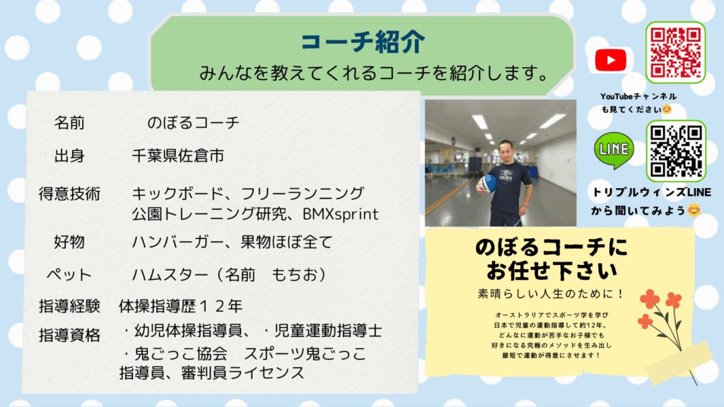 スクールでコーチをしております。のぼると申します。